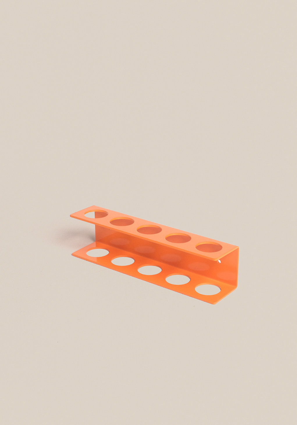 CADDY in Hot Orange is an agreeably minimal, bi-fold aluminium equipment holder.